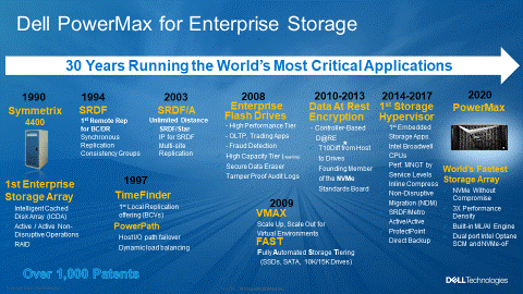 Before we dive into the cool details, today is also a major milestone for the storage industry itself.  Exactly 30 years ago from this month, the first generation of PowerMax, the Symmetrix, was introduced. Symmetrix forever changed the IT infrastructure landscape. It allowed users for the first time to decouple their CPU and storage decisions and provide the ability to safely choose best of breed technologies. This ability to choose storage independent of compute not only created today’s external storage marketplace, it also fueled the storage innovation and technology evolution that continues to be one of the most critical elements of IT.
